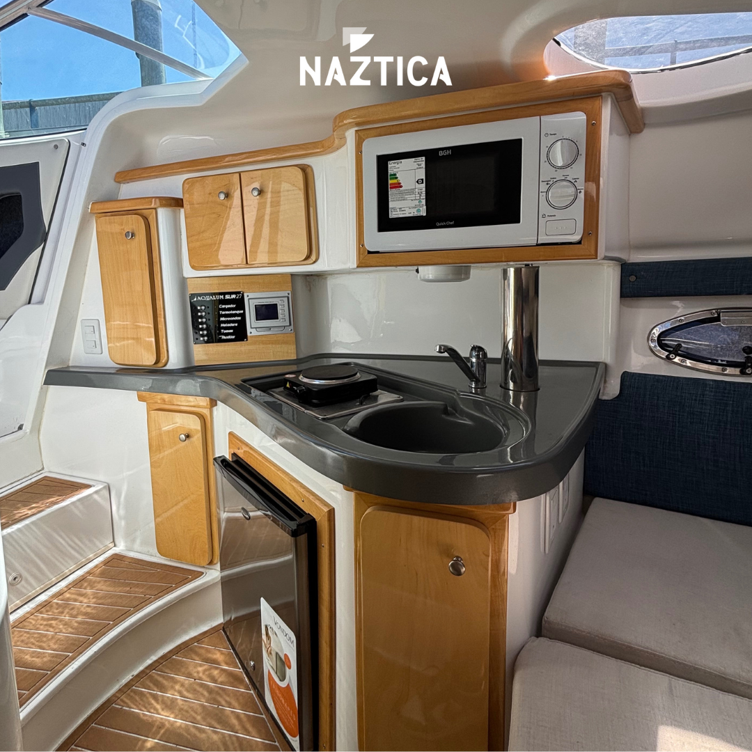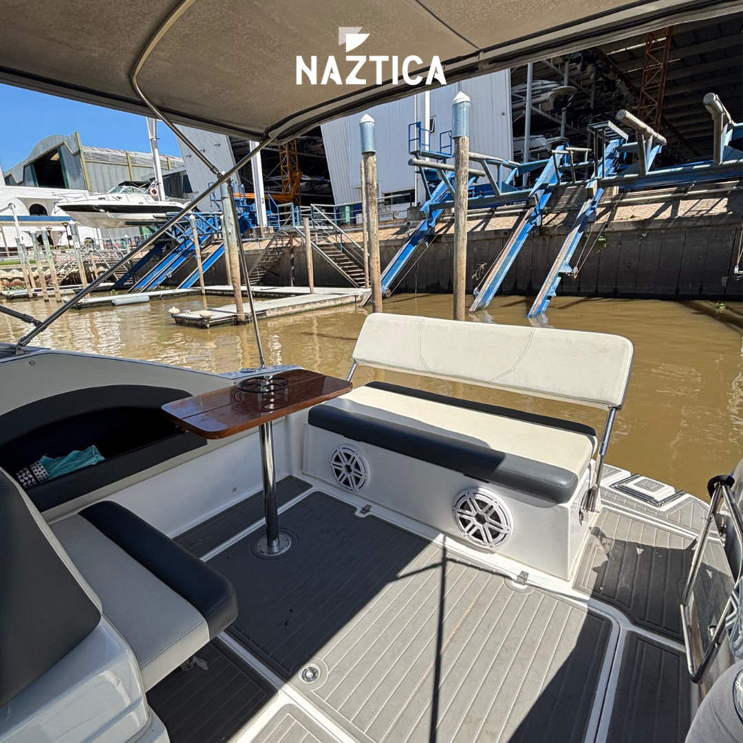 Con un solarium en cubierta muy amplio y seguro y su living en popa con mesa, es una embarcacion ideal para disfrutar con familia y amigos con todas las comodidades.